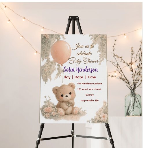Teddy Bear floral Baby Shower in,vite, supplies Designed by the gift shop