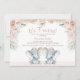 Blush Floral Twin Elephants Baby Shower Invitation