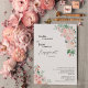 This blush floral white engagement party invitation design features beautiful chic neutral backgrounds of black or white with simple modern typography and elegant calligraphy to set a sophisticated tone for any style of event. Each product is embellished with gorgeous blush pink roses and peach and ivory hydrangeas arranged with lush eucalyptus and greenery leaf details, along with timeless geometric gold frames for a luxurious look. Mix and match this coordinating collection for an effortless personalised dream wedding aesthetic for a wide range of casual to formal styles. For more coordinating designs, this design is also available in pastel pink and navy blue. As with all of our design, if you have any questions or special requests please just ask.