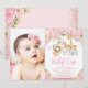 Blush Floral Wild Safari Animals Girl 1st Birthday Invitation
