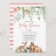 Blush Floral Woodland Animals Girl Baby Shower Invitation