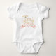 Adorable woodland-themed baby bodysuit featuring a group of adorable baby animals and elegant watercolor floral arrangement in blush and gold. Matching items available in our store!