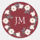 Blush Floral Wreath Burgundy Monogram Wedding Classic Round Sticker