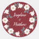 Blush Floral Wreath Burgundy Personalised Wedding Classic Round Sticker