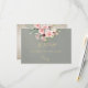 The Blush Floral & Wreath RSVP - Sage features the bride & grooms first initials and a blush pink floral bouquet on a sage background. The back has details for the recipient to fill out. Designed to coordinate with the "Floral & Foil Botanical Wreath" Wedding Collection. To change details, click «Personalize». To move the text or change the text size, font, or color click «Click to customize further» initials