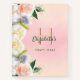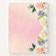 A notebook with blank pages for craft ideas, drawing, sketching and doodling. Decorated with large, lush watercolored summer flowers, florals roses and peonies in white, coral and rose gold. Girly romantic blush pink, rose gold gradient background. Add your name, monogram letter and a book title. Green and peach coloured letters.