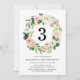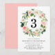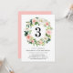 Elegant floral birthday party invitation featuring the person's age surrounded by a wreath of blush flowers and lush green leaves. Personalise the botanical birthday party invitations by adding the birthday girl's name and party details. The reverse side of the invites feature a solid blush pink background.