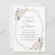 Invite friends and family in style and set the tone for your special day with this charming birthday invitation. Design features blush pink watercolor flowers, greenery and gold frame on white background.