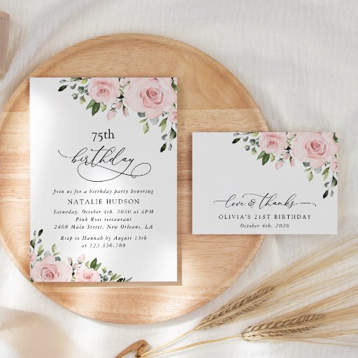 Blush Flowers, Pink Flowers, Greenery, Birthday Thank You Card
