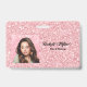 Blush Glitter hair salon elegant script photo ID Badge