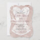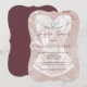 Elegant glam lingerie bridal shower invitation template featuring a white lace corset with a diamond stone over a rose gold blush faux glitter marble pattern. ++++++++++ Suitable for any season modern bridal shower parties.