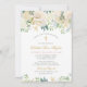 Blush Gold and Green Floral Baby Girl Baptism Invitation