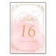 Elegant handwriting calligraphy script and flourish frame in faux gold colour on watercolor blush background, romantic and formal, great wedding table number cards for vintage wedding, traditional wedding, and classic wedding all year round.
