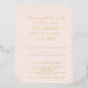 An elegant Christian wedding invitation featuring a beautiful opening in gold foil script font - "Desiring God's will for their lives and believing that it includes each other". Add your details in classic serif font also in gold foil, on a blush pink background.