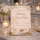 Blush gold dinner party design featuring soft floral greenery, warm neutral tones, and flowing script typography. Champagne glasses, candle accents, and a refined place setting complete the layout—suited for birthday dinners, intimate gatherings, and restaurant-style celebrations.