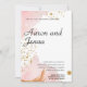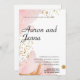 The main invitation is white with black writing, adding a touch of simplicity and sophistication to the design. However, the gold flecks and blush splotches add a modern and artistic touch that makes this invitation truly unique. The accents are strategically placed to create a cohesive and beautiful design that's sure to impress your guests.