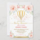 Blush Gold Floral Hot Air Balloon Girl Baby Shower Invitation