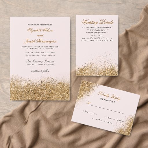 FAUX Glitter Dust Blush & gold Invitation SuiteDesigned by Maria G
