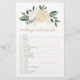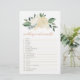 Classic style wedding bridal shower "wedding word scramble" game features a list of wedding-related words with letters in scrambled order. As guests to unscramble the words - whoever unscrambles the words first (or makes the most correct guesses within a certain time) could win a prize. Game sheet is accented with an elegant floral watercolor design that has painted roses, ranunculus flowers, and leaves in neutral shades of white, cream, blush pink, gold and green. Answer Key: 1. BRIDE 2. RING 3. GUESTS 4. GOWN 5. AISLE 6. FLOWERS 7. PHOTOGRAPHER 8. WEDDING 9. GROOM 10. CEREMONY 11. MARRIAGE 12. BRIDESMAID 13. WIFE 14. LOVE 15. VOWS 16. CAKE 17. MAID OF HONOR 28. VEIL 19. HONEYMOON 20. REGISTRY
