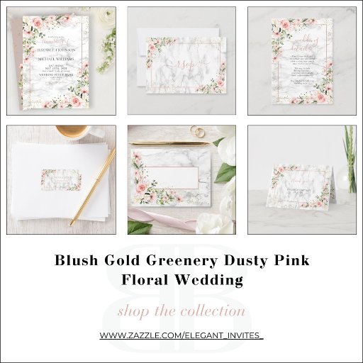 Blush Gold Greenery Dusty Pink Floral Wedding Invitation