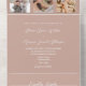 Modern and romantic blush pink all-in-one wedding invitation with gold foil lovebirds, three custom photo spots, a QR code for RSVP, and a wedding website link. This elegant folded design eliminates the need for an envelope—making it an eco-friendly and stylish choice. Includes a built-in RSVP section with meal preferences. Perfect for couples who want personal, photo-based invitations with convenience and charm.