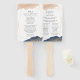 These fans were exactly as pictured. The quality is great. Perfect favor for a wedding!...I will make assembly a little easier by using a hot glue gun and finish them off with a ribbon. Beautifully printed. Crisp and clear text.