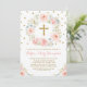 Blush Gold Watercolor Floral Baptism Christening Invitation