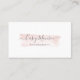 Simple and elegant business card design features your name or business name in modern, hand lettered script typography, overlaid on a sheer wash of blush pink watercolor. Add an additional line of text beneath in matching grey lettering for your occupation or title. Personalize the reverse side with your contact details. A chic and professional choice in soft blush pink and gray for any occupation.