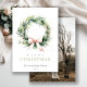 Blush Green Christmas Wreath Watercolor Photo Holiday Card