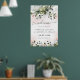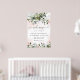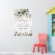 Design features light or blush pink watercolor splashes with printed gold simulated flecks. Design also features blush pink rose floral elements within a greenery bouquet or wreath. The wreath contains a succulent, eucalyptus and other greenery elements in shades of dark emerald green, sage green, dusty blue and more to fit all seasons that your wedding may fall within and colours that compliment the colour blush. Set to 24x36 inches by default - XL size.