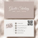 A refined and modern blush mauve business card design for beauty professionals. Featuring elegant white script paired with a minimalist layout, this design includes a functional QR code and monogram on the back. Perfect for hair, skin, and nail artists seeking a chic yet approachable presence.