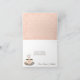 Espresso your joy and thanks with a latte love with these sweet and pretty coffee themed wedding bridal and couples shower thank you note cards in cream, brown, blush and silver hues with a cup of coffee that can be monogrammed with the initials of the bride and groom on its blush coloured peachy pink heart design. This steaming cup of joe on a saucer with a spoon on it has a foam heart floating in it. The inside top of the card has a blush pink and white polka dot heart pattern. Artwork © Chrissy H. Studios, LLC. All rights reserved.