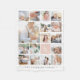 Customise this soft fleece blanket with 16 square photos arranged in a grid collage layout, with one large image and the remainder small. Your single initial monogram appears on a blush pink square at the lower right. Add your family name or custom caption along the bottom in chic grey.