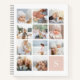 Customise this spiral notebook with eleven square photos arranged in a grid collage layout, with your single initial monogram on a blush pink square the lower right. Back cover has tone on tone blush pink stripes.