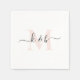 Blush Monogram Cocktail Napkin. White. Combo font. Swash.