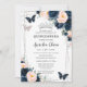 Blush Navy Blue Floral Butterflies Quinceañera Invitation