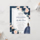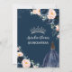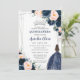 Blush Navy Blue Floral Princess Silver Quinceañera Invitation
