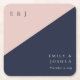 Blush Navy Blue Modern Wedding Square Paper Coaster