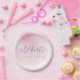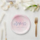 These elegant modern calligraphy cheers paper plates with rustic floral design in navy blue on soft blush pink watercolor background, great for modern rustic wedding, spring wedding in evening, and other celebration occasions.