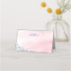 These elegant modern calligraphy wedding place cards with rustic floral design in navy blue on soft blush pink watercolor background, great for modern rustic wedding, spring wedding in evening.
