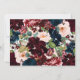 Design features beautiful watercolor floral elements (peony roses, several elegant English rose elements, etc) in shades of burgundy red, blush pink, navy blue and more over eucalyptus greenery, leaf elements, and more in line designs leaves.