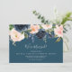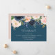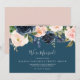 These blush and navy flowers blue elopement announcement cards have a beautiful floral design. The classic and elegant design features modern watercolor navy blue and blush pink flowers on a teal blue background. Personalise the card with your marriage details, and use the template section on the back for reception information, to announce a change of address, or for any other details you would like to share.