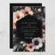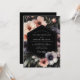 Embrace a dramatic and romantic atmosphere with this elegant floral design. Luminous blush, peach, and periwinkle anemones bloom against a deep, dark backdrop, creating a stunning chiaroscuro effect. Soft petals and delicate greenery are rendered in a soft, painterly style, offering a touch of sophisticated drama for your special union.