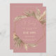 Celebrate your little one with this boho pampas grass baby shower gender reveal digital invitations! A frame of pampas grass, greenery, dried tropical leaves, and beige feathers surrounding a delicate, gold frame helps create a rustic and sophisticated look that is perfect for your gender reveal. The colour scheme of beige, green, white, and blush help make this an ideal invitation for baby showers and gender reveals. The combination of cursive and traditional text bring the look together for both a unique and vintage feel!