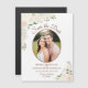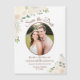 These beautiful magnetic wedding save the date cards feature a rustic yet elegant hand painted floral design with your photo in an oval frame surrounded by watercolor roses, blossoms, and flowers in shades of champagne blush or pale peach, with a bevy of eucalyptus leaves, greenery, and foliage. The typography features fancy script lettering. This stylish boho chic card is a great way to make sure your friends and family are aware of your upcoming wedding.