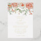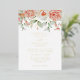 This elegant wedding invitation features a watercolor floral border in shades of blush peach with assorted greenery. Personalise the important details such as bride and groom names, wedding date, time and location in a real gold foil typography