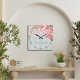 This elegant blush peony floral wall clock is designed for those who appreciate refined home décor. Soft blush blooms rest against a calming sage green backdrop, accented with subtle gold detailing—creating a timeless piece that brings warmth and sophistication to any space.