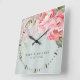 Blush Peony | Sage Green Gold Elegant Gift Square Wall Clock