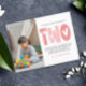 Modern, simple and elegant girl second birthday thank you postcard. Design featuring blush pink typography two , thank you message and a photo.