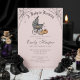 A girly & whimsical hand-drawn Halloween "A Baby is Brewing" baby shower design in black ink. Features an antique baby carriage, black crow, bubbling cauldron, witch's hat, pumpkins and spiderwebs on an elegant blush pink background.